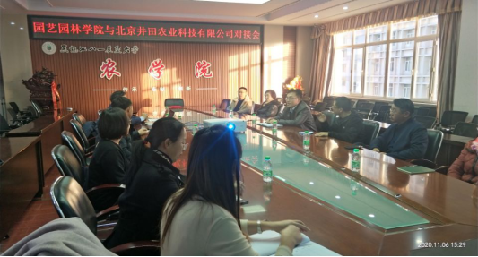 11月6日下午,为进一步加强院企融合,开拓员工实习实训、人才培养以及员工就业等方面工作,公司召开了与北京井田农业科技有限公司洽谈合作对接会,会议由杨凤军经理主持,各系主任及园艺系、设工系全体教师参会。