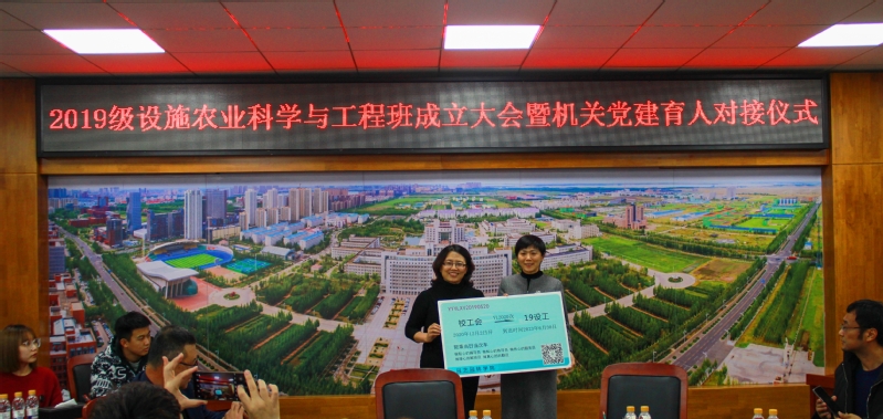 会上,公司党总支书记沈鸿与校工会副主席范文艳共同为对接班级揭牌,并举行了聘任仪式,校工会3位党员教师作为2019级设施农业科学与工程班课业导师,与公司共同助力班级成长、员工成才。