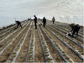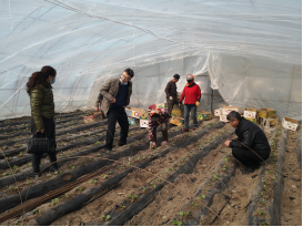 下午13时,一行人来到大庆市大同区于天利果蔬种植专业合作社园区内,种植户杨利军的棚室生产区。此行的目的是为农户做公司创建并推广的五层覆盖技术薄皮甜瓜生产技术,此时期正值甜瓜苗木定植,专家团队对关键节点进行了技术讲解,同时免费赠送了生物菌肥,扶持农户生产。
