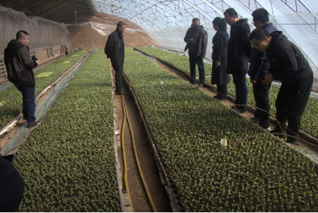 座谈会后,一行人来到新福乡耀先村薄皮甜瓜协会育苗温室,调研了种植户的薄皮甜瓜育苗情况,专家们对于薄皮甜瓜育苗中温、湿度管控提出了具体要求,同时对育苗期间易发病害的预防和治理方法提出了具体方案。推荐木霉菌复合菌剂、壳寡糖等生物制剂等绿色防控手段在育苗环节和生产中的应用。