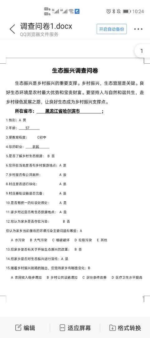 本次活动团队采取展线下问卷和线上普及相结合的方式。线下问卷了解该村生态村文现状、对于村文生态建设了解情况、以及村民们对当下生态治理最关心的问题;线上普及的方式向当地群众进行宣讲,加强群众对党的十九届五中全会会议精神的认知,宣传村振兴战略。并且进行实地的调研实践,与生产-线近距离接触,和农场职工,工作人员之间进行沟通、交流。