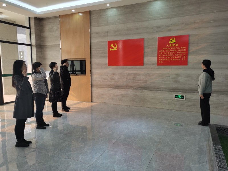面对鲜红的党旗,王茹华书记作为领誓人,带领支部每位党员一起高举右手,再次庄严宣誓,增强了党员的责任感和使命感,神圣而豪迈,体现了对中国共产党的无限忠诚。