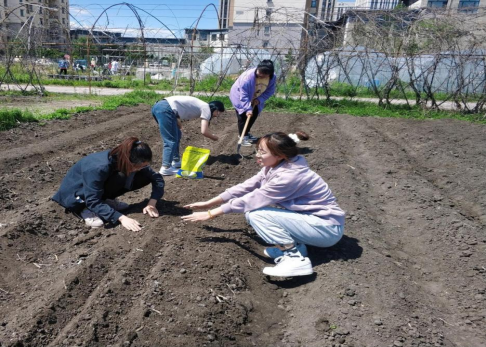 责任田承包,体验农活感知农业。实习第一天,同学们以小组为单位,每小组分五垄地的责任田。每小组可以自由选择栽种蔬菜品种,在老师的指导下进行了整地、播种、浇水等农事劳动,实习结束也会安排组员轮值管理,直到收获。通过劳作不仅增强同学们的团队协作能力,而且激发了员工对专业的兴趣。