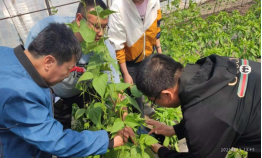在模范村王建峰的甜瓜和番茄栽培温室和大棚,发现甜瓜果实正处于膨大期,有的甜瓜植株呈现叶片黄化、植株萎蔫,严重的植株死亡,经过查看、询问有关情况后,发现由于连作导致甜瓜发生枯萎病。依据情况,专家给开出了防治香瓜枯萎病发生及防治的药方,免除了过度购买农药和喷施农药的现象;在番茄栽培温室,发现番茄发生叶霉病和灰霉病,建议进行扩大通风、降低湿度,调节病害发生,同时利用生物制剂防治病害的蔓延。
