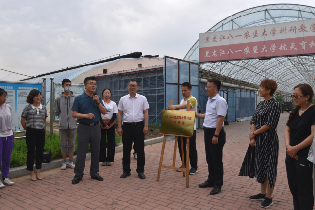 6月17日15时,大庆市科技成果转移转化示范基地揭牌仪式在u8国际网站大庆设施农业研究科研教学基地举行。大庆市科学技术局成果转化中心主任张国和,公司新农村发展研究院执行副经理宫占元、副经理崔冬梅,u8国际平台经理杨凤军、副经理盛云燕,大庆设施农业研究经理田丽美及农业相关人员共同参加了仪式。仪式由杨凤军主持,张国和和宫占元共同为基地揭牌。