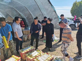 在保安村牟艳辉的甜瓜栽培基地(肇州县禹之硕家庭农场)看到工人们正在采收香瓜,并进行包装和装车,一派繁忙景象;靳亚忠副教授、张有利副教授以及李秀玲局长现场查看了香瓜果实外观形状,并进行了品尝,发现利用木霉菌菌剂、壳寡糖、酵母硒处理的想瓜果实,外皮光亮、果肉脆甜、风味极佳,而且香瓜采收后植株一篇浓绿,引起观摩者一片称赞。
