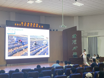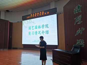 园艺系副主任富丰珍和园林系主任王洪义分别介绍了园艺系和园林系员工实习过程的具体情况,从筹备、落实落靠实习单位、中期检查等情况。园艺18级员工王超、李金雨和园林18级的何幸莹分别从实习单位的情况、实习内容、日常生活剪影、感想收获等方面展开进行介绍,实践、成长、感恩、和谐、酸甜苦辣,每一位员工用自己的实际行动传承着顽强拼搏、艰苦奋斗的北大荒精神。