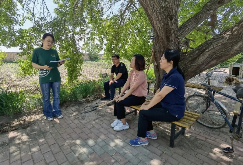 “这是心的呼唤,这是爱的奉献;这是人间的春风,这是生命的源泉。只要人人都献出一点爱,世界将变成美好的人间。”随着《爱的奉献》音乐的响起,富丰珍同志在田间地头旁的糖槭树下分享了“我是党员 我奉献”的主题党课。号召各位党员要深刻地认识到,党员并不是一种称呼,而是一种奉献和牺牲,作为一名高校教师,应立足于本职工作,在平凡的岗位要发挥孺子牛、拓荒牛、老黄牛的精神,传道授业解惑,成为员工的思想教育者和道德示范者。