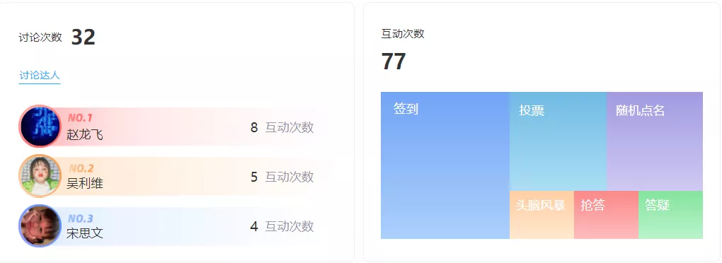 3.针对线上上课师生之间不能面对面交流的情况,活跃课程的气氛,增老员工学习的兴趣,提高员工的听课状态,在教师备课之中不同的知识点的节点设置互动环节,因授课中打字会影响授课效果,提前对要进行互动的内容进行编辑,提高授课时效,同时口述问题,利用点名、抢答、投票等形式,让员工参与其中。