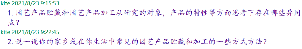 通过2020年线上授课经验,2021年在进行《园艺产品贮运与加工学》课程授课时继续沿用智慧树直播,并对授课班级分别建立QQ群。