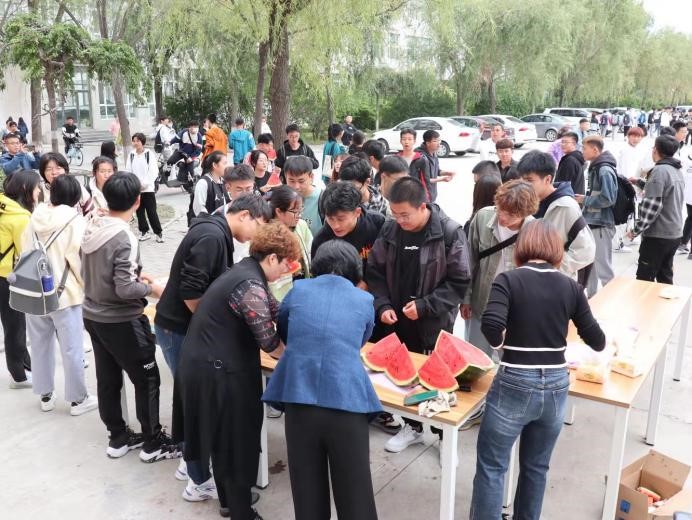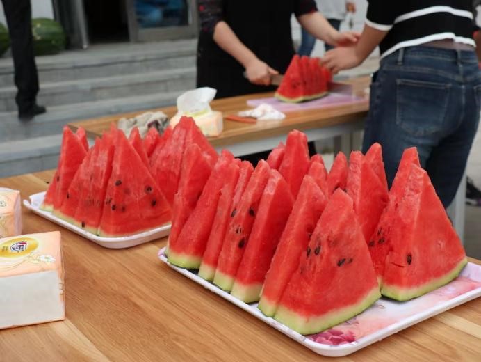 金秋因疫情原因,很多教工和同学不能同家人团聚欢度中秋,为缓解大家的思乡之情,u8国际平台全体师生在公司门口举行自产航天西瓜品鉴会,为过往师生切分西瓜,共度佳节。