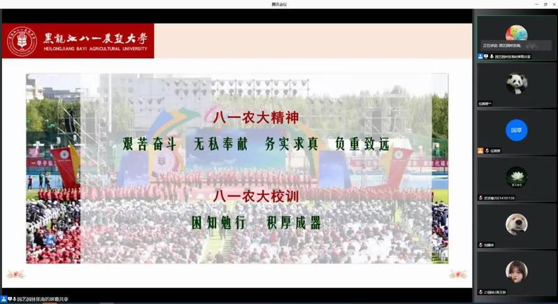 张南老师从四个方面展开分享,向同学们介绍了大学的深刻意义,讲述了公司的建校历程和发展情况、“北大荒精神”与“八一农大”精神的同根同源;并用“目标”与“梦想”两个词语切入,鼓励大家从高中步入大学,不仅要完成身份上的转变,更要完成生活、学习、思考方式等方面的转变,认识到职业规划对自身的重要性。最后,张南老师鼓励同学们“以终为始”,调整好规划、归零、尊重、成人四种心态,正确地设定目标,认真地感受过程,坦然地面对失败,全力以赴奋斗青春,成就精彩人生。