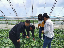 田间调研的同时,与镇党委书记石磊书记、繁荣村村支书毛海军书记以及王君丰军长进行了探讨,提出了进一步加强生产技术培训、指导以及进行绿色防控等相关知识的培训,提高栽培管理水平和绿色防控意识,实现绿色优质香瓜生产,推动繁荣村香瓜品牌的打造与推广,提高农民收入,推动乡村振兴。