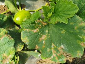 在繁荣村种植香瓜大棚中,我们发现50个大棚香瓜植株长势良好,叶片浓绿,果实个体大小均匀,色泽靓丽,正处于果实膨大期,预计10多天后可以开园。但在大棚中,发现部分植株出现叶片褐化、干枯、白色菌浓、茎蔓水浸状和白色菌浓斑;经过现场诊断确定是香瓜发生了细菌性果斑病,我们团队给出了的治疗方案,“问诊把脉,精准防治”是我们为繁荣村香瓜种植保驾护航的根本方针;推动香瓜栽培中减肥减药、降低成本以及提高了绿色种植水平,目前香瓜长势喜人,预计能实现绿色优质香瓜生产,并能提高经济收入的目标。