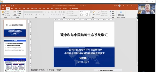 “双碳”战略是我国创新发展理念的重要组成部分,即力争 2030年前二氧化碳排放达到峰值,2060年前实现碳中和目标。为实现上述目标,国家各行各业都在围绕该战略制定行动计划。11月30日,u8国际平台特邀请中国科公司地理科学与资源研究所研究员、中国科协碳汇咨询团队首席科学家何念鹏为公司师生作关于“碳中和与中国陆地生态系统碳汇”专题报告。会议由杨凤军经理主持,采取线上形式进行。