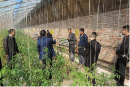 会后,参会人员到先锋村调研了农户碱地番茄种植情况,了解了种植户生产中存在的问题主要有选择种植品种比较盲目,连作障碍明显,田间病害严重。科技人员当场给出了解决方案并表示将进行跟踪指导。