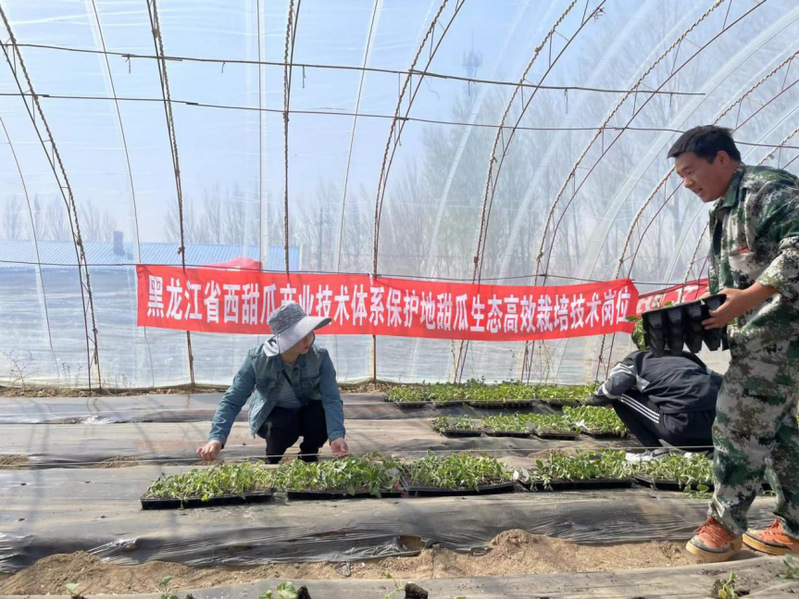 5月8日,黑龙江西甜瓜产业技术体系专家盛云燕教授及李丹丹副教授带队,与王岭副研究员一同前往大同区双榆树乡向阳村进行生长季西甜瓜种植指导及其生产中遇到的相关问题。此次志愿社会实践服务活动,是为了让党员与研究生更好地投身乡野田间,融合研究生实践与乡村振兴的战略,推广现代农业种植理念,提高员工的创新实践能力。