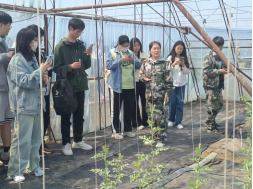公司21级园艺专业的员工们担任讲解员,对基地的种质资源创新、航天育种、栽培技术创新、科技成果转化展示、社会服务等方面进行了详细介绍。实习团对基地的农业设施和种植技术表现出了浓厚的兴趣,并与讲解员进行了深入的交流和探讨。