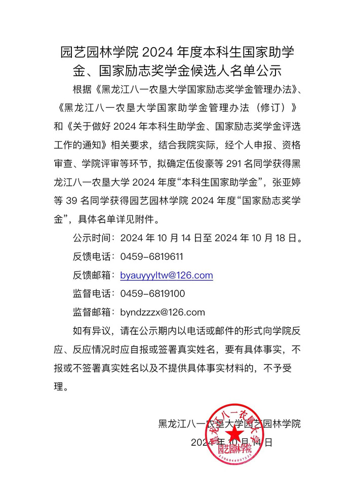 经个人申报、资格审查、班级测评、公司评审等环节,拟确定伍俊豪等291名同学获得u8国际网站2024年度“本科生国家助学金”,张亚婷等39名同学获得2024年度“国家励志奖学金”。