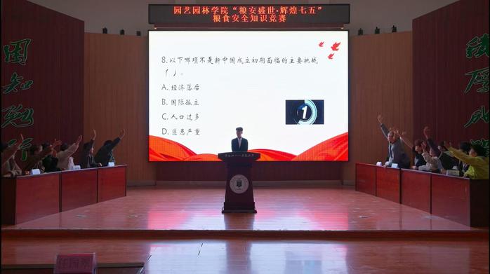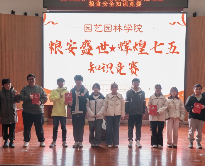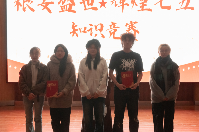 竞赛以班级为单位,设置必答题、抢答题、风险题、选答题四个环节,重点围绕《中华人民共和国粮食安全保障法》《中华人民共和国反食品浪费法》以及中华人民共和国成立75周年以来取得的重大成就等相关知识展开比拼。经过激烈角逐,最终评出一等奖1个,二等奖2个,三等奖4个,与会辅导员老师并为获奖班级颁发奖品和证书。