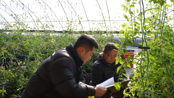 仪式结束后,与会人员共同参观了科技小院基地及员工生活区,并深入大同区棚室发放科技小院宣传手册,为当地农户讲解种植技术与管理方式,如何提高生产效率、稳定种植和生长环境,为促进当地产业转型升级和农民增收注入科技的力量。