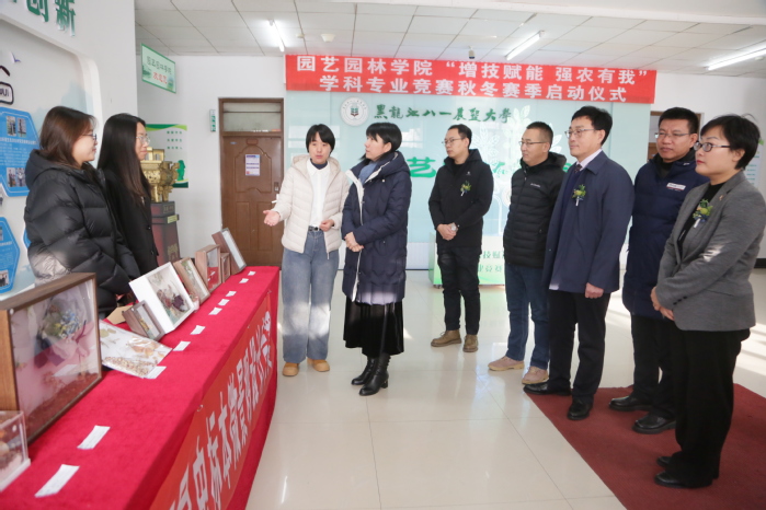 随后,与会领导嘉宾前往“虫鸣绿水青山间”昆虫标本微景观设计大赛、“种业振兴 农业强国”园艺植物种子识别分类竞赛、“指尖上的农耕艺术”设工专业温室模型展览、“美丽中国”园林建筑模型展览、“我爱我家”校园景观设计大赛、“实践中尝试 实践中觅食”园艺产品贮运加工学课程展示、学科专业墙报大赛作品展示等八项赛事与课程展示区域进行参观走访,了解赛事开展、课程教学实践情况。